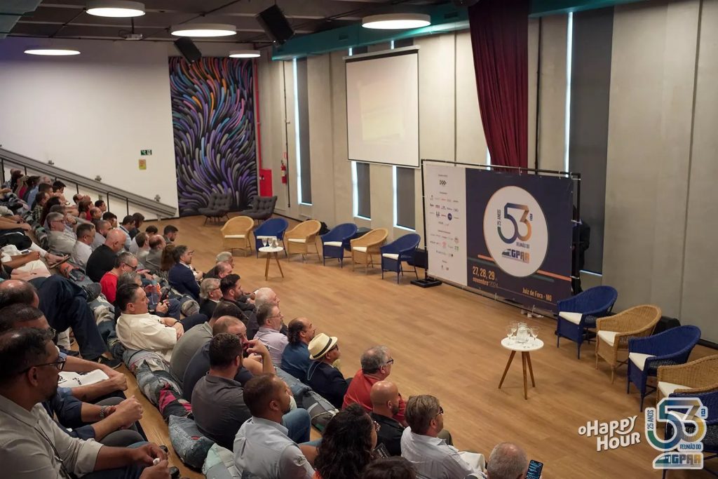 A Codemge (Companhia de Desenvolvimento de Minas Gerais) esteve presente na 53ª reunião do GPAA – Grupo Permanente de Auto Ajuda na Área de Manutenção Metroferroviária. O evento reúne profissionais do setor ferroviário que cooperam técnica e permanentemente com inovação, pesquisa e soluções voltadas ao transporte de passageiros e cargas. A reunião está sendo realizada em Juiz de Fora/MG, entre 27 e 29 de novembro. A solenidade de abertura contou com a participação do gerente de Planejamento, Pesquisa e Inovação (Geppi), da Diretoria de Concessões e Parcerias (Dicop) da Codemge, Leandro Rodrigues e Silva.