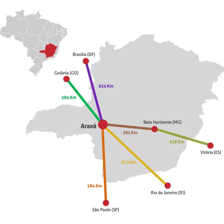 Com localização privilegiada em relação aos grandes mercados nacionais (São Paulo, Rio de Janeiro, Brasília, Goiânia e Belo Horizonte), Araxá é um polo turístico importante e valorizado em todo o país. A cidade conta com boa infraestrutura e o charme de ser berço da lendária Dona Beja. Sua maior atração é o Conjunto Termal do Barreiro, que compreende, além do Grande Hotel e das Termas, as fontes Dona Beja e Andrade Júnior, a praça de esportes, o Centro de Aventuras, o Castelinho, além de bosques, jardins e um belíssimo lago. O complexo do Barreiro está localizado a 4,5 quilômetros do centro da cidade.